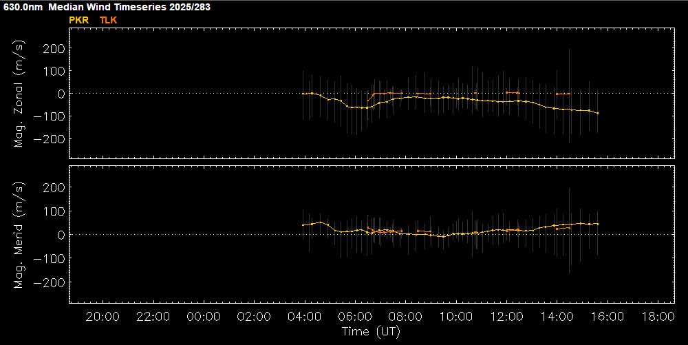 Toolik Lake is now running, after Carl and Manbharat made a trip up there to repair a fault in the sky/calibration view switch mechanism. Poker is also running, although there have been some problems with the camera during the last week or two that have produced erroneous wind fields. I tweaked some camera settings last night, which seems to have helped. However I will watch it over the next few days, as I am not yet convinced that the artifacts are completely gone. HAARP remains offline, because the whole site is off-contract and everything there is inaccessible. The hope is that it will be back and running within a few weeks.
